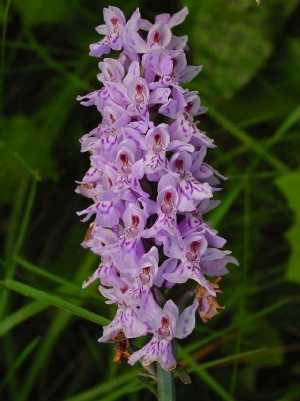 All wild orchids are rare and therefore protected under UK/EU laws. On 25 June 2003, I discovered no less than six specimens growing close together in a local hayfield. They were of the species Dactylorhiza fuchsii, the Common Spotted Orchid. The term 'Common' is relative - most people never see one in their lifetime.