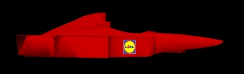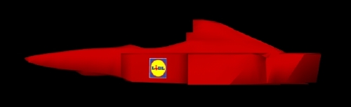 Now applying the Lidl image is pretty easy. It's got its own colour scheme over the entire area and a white outline, so it will sit nicely within the 'Decal' outline. We won't have to worry about matching up anything with the surface of the body mesh.