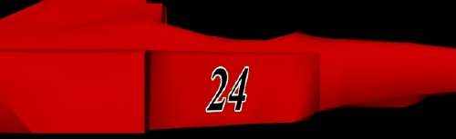 Now I just don't feel like loading the '24' decal back into a paint package and repainting the background red. In fact doing so could turn out to be a real pain in the butt. Why? because the image is antialiased and changing the background colour is not the only problem. It's all those hundreds of tweeny pixels that need tweeking as well. Forget it! We need the Alpha Channel for this one!