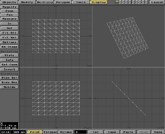 To keep things simple, in Modeler I created a flat target surface of triangular polygons and set it up at 45 degrees to the horizontal. Here's the picture....