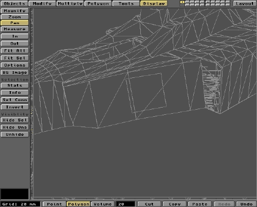 Great! If you're intending to produce a single picture of the left side of the car, the job's done. But what about the other side? Remember the stencil was applied completely though the body mesh, giving us an identical 'Decal' outline on the right side too. Let's take a look.