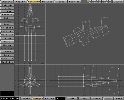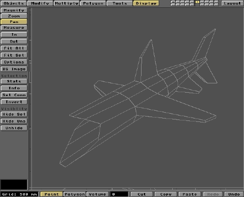 Before you leave Modeler, you could tidy up the small 'hole' in the tail end of the body by joining all twelve points using the Weld tool. After this, just drag the resulting single point into the appropriate position. You may also find minor polygon errors created during the manipulations. These are usually obvious in a trial render. Alternatively, use the Display/Stats tool in Polygon mode to examine the types of polys you have ended up with. Most errors are easily resolved using the tools available under the Polygon menu.