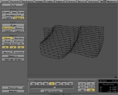 When you run this test animation, you'll probably see a glitch as the loop recycles to the start. The easiest solution to this is to change the Wave Speed. Subtle changes to the Wave Speed setting will let you see the direction to go and you'll quickly get things looking OK. When you're happy with the Preview, it's time to sit back and let LightWave do it's stuff.
